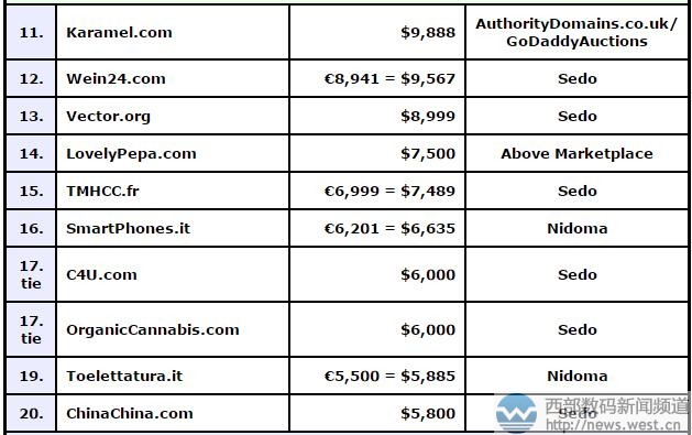 DN榜:两数字域名20.com千万元夺冠!两杂域名J5.COM卖出六位数!西部数码(west.cn)4月20日消息,本期的DN交易榜(4.10-4.16)上,短字符域名表现不错,排名前三的均是两字符域名。其中,数字域名20.com以1,750,000美元的成交价夺得第一,约合人民币1205万元。 域名20.com注册于1995年11月,距今已经22年历史。作为整十2数字,全球仅有10个,资源稀缺,域名品相自然不必多说。同时数字域名全球通用,建站限制小,尤其适合搭建金融、游戏、菠菜等类型终端平台。据了解,这个域名由海外知名创业者和天使投资人Jason Calacanis在2006年以7.5万美元买入,今年则以175万美元的价格售出,这也是今年目前为止DN交易榜排名第二的域名,仅此于01.com。 紧随其后的是两杂域名j5.COM,由Sharjil Saleem中介售出,成交价为115,000美元,约合人民币79万元。域名j5.COM注册于1997年6月,距今刚好20年,记忆输写优势相当突出,而且含义上,j5可代表“街舞、接物、景物、家务、吉屋、酒屋”等词语,适合搭建舞蹈、电商、旅游、房产等网站平台。 同样经由Sharjil Saleem中介的还有16.net,成交价为60,000美元,约合人民币41万元,这也是本期DN交易榜的第三名。据了解,此前,Sharjil Saleem还中介了“帝吧”d8.com、“物流”w6.com、,甚至连不久前近280万元易主的“资产”域名asset.com(近280万元),也是他中介的,还有0123.com、7200.com、Shelly.com等域名…… 随后是两个意大利域名sos.it和launch.it,前者代表“呼救信号”,后者则有“发动、发射、开始”等中文含义,其结拍价分别是22363美元、17122美元。此外,“智能手机”SmartPhones.it、“美容”Toelettatura.it也结拍了。 除此以外,“色彩街”域名colorstreet被化妆品终端以16,000美元收购,目前正在启用建站;杂米域名Porn4K.com因与成人网站沾边,也拍出了不错的价格。 本文转载自新闻资讯,原文链接:DN榜:两数字域名20.com千万元夺冠!两杂域名J5.COM卖出六位数!