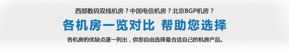 因客户的需求重点各有不同,有的需要带宽高但价格便宜的、有的需要品质高的、有的需要免备案的,而单个机房不能满足所有客户的需求。因此我司运营了多个机房,供客户自由选择最合适自己的机房产品。 因机房数量较多,新客户可能较难很快选择到最适合自己的产品。本文将各机房的优缺点逐一列出,希望对您有所帮助!